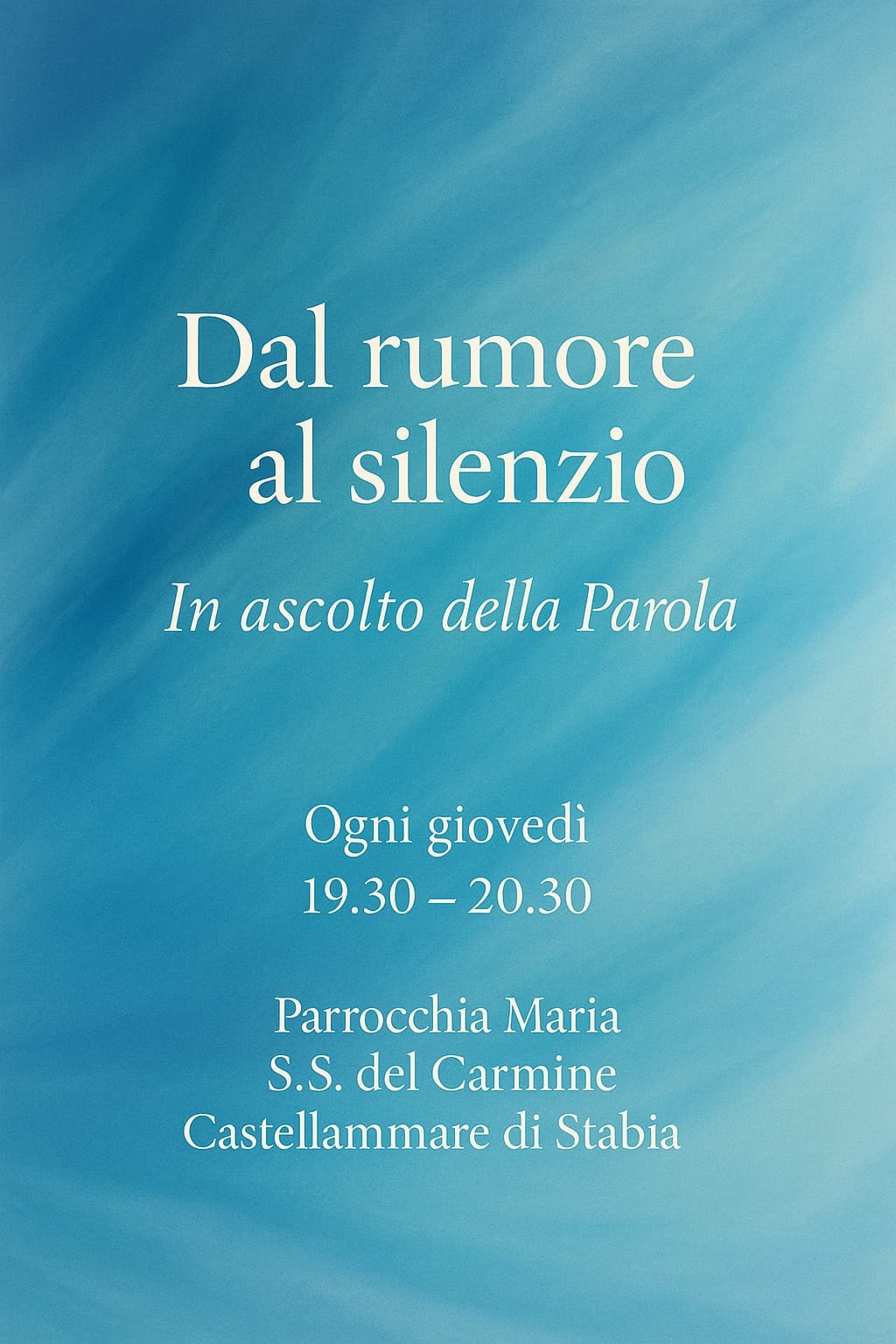 Buongiorno, vi invito a questo momento di meditazione, aiutati da brani della Bibbia e musica rilassante… E’ necessario prendersi una pausa di silenzio perché siamo troppo ingolfati, stressati, stanchi dentro… Non è un’evasione, ma una rigenerazione che solo la Parola di Dio ci può donare……