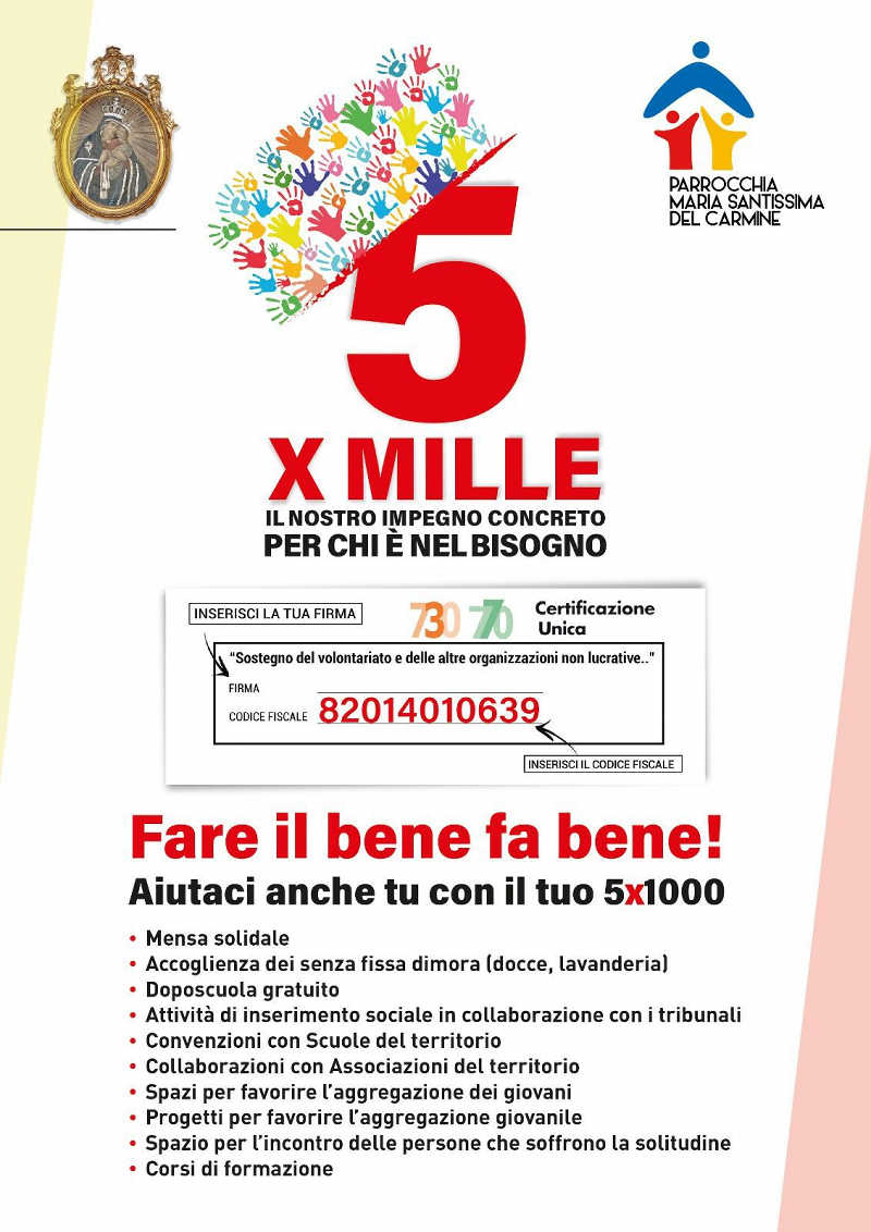 Ti chiedo la cortesia di considerare la mia richiesta del 5 per mille per finanziare soprattutto il pranzo solidale, il servizio docce e la lavanderia per i senza fissa dimora Basta una firma. Non costa nulla!!! Luigi