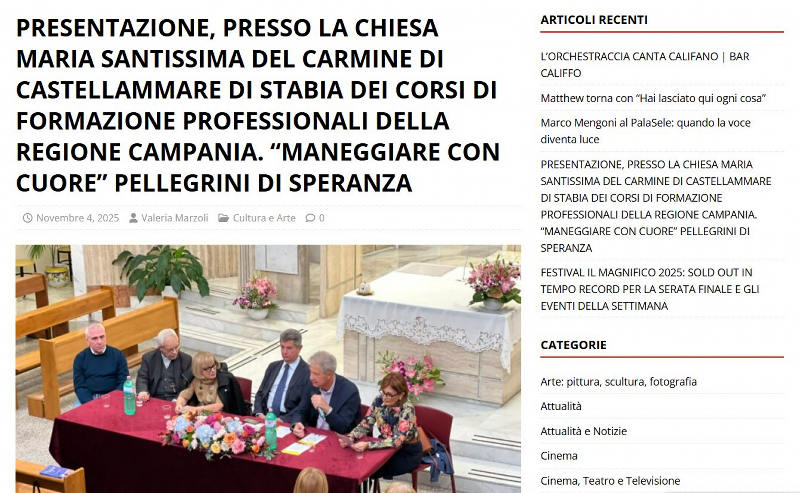 ECCO A VOI l'articolo sulla presentazione, presso la nostra Parrocchia, dei Corsi di Formazione Professionale della Regione Campania "Maneggiare con cuore" Pellegrini di Speranza!Leggi l'articolo