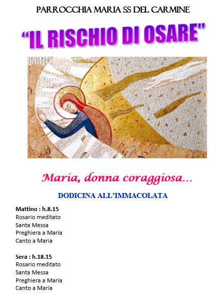 Vi invio questo testo perché possiate utilizzarlo non solo per la dodicina dell’Immacolata, ma per invocare l’intercessione della nostra madre del cielo ogni giorno. E’ un aiuto concretamente prezioso!!! Don Luigi Maria, donna coraggiosa Vergine Santa e Immacolata, che sei l’onore del nostro…